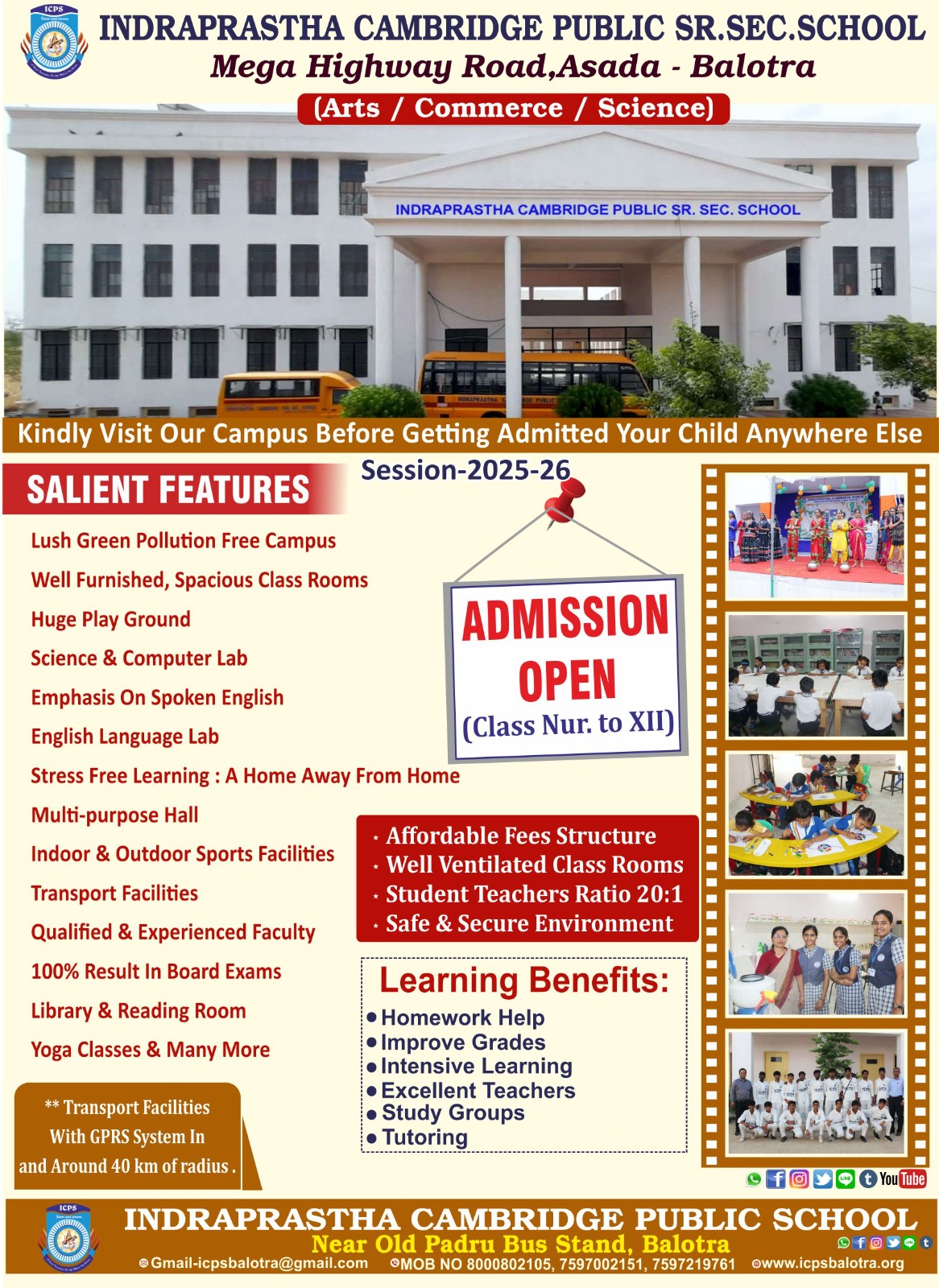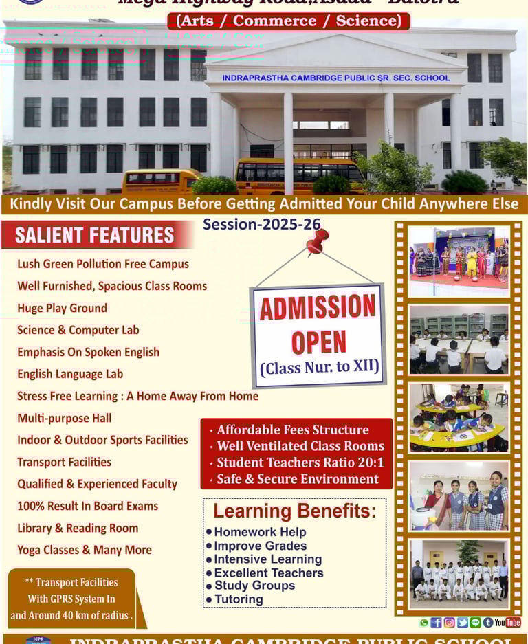 Indraprastha Cambridge Public School is a co-educational school located in a lush green environment, just 10 kms away from the city center.