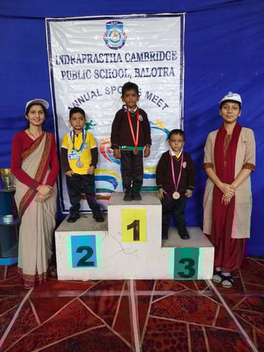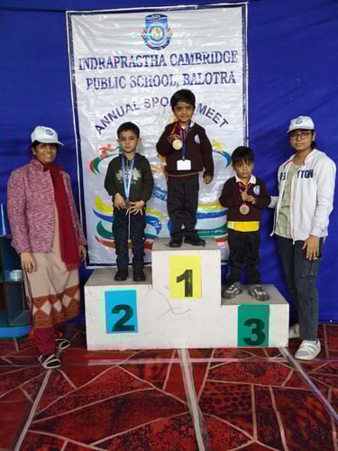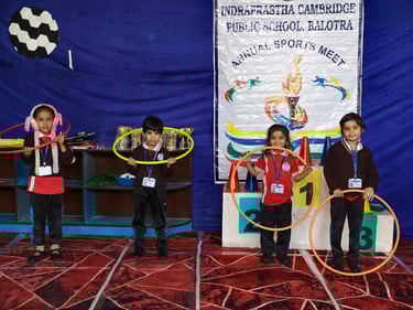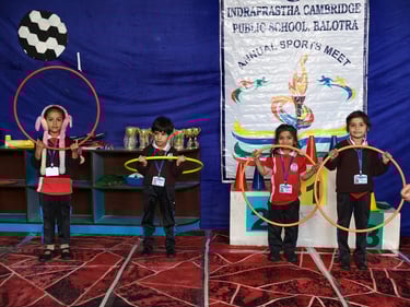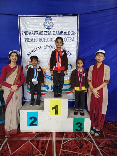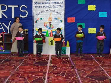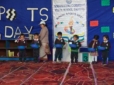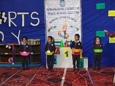 Indraprastha Cambridge Public School celebrated its annual sports day with great enthusiasm and zest. The entire school campus was buzzing with excitement as students, teachers, and parents gathered to witness the thrilling athletic events. The sports day started with a grand opening ceremony, where the school principal encouraged the participants with motivating words. The track and field events included sprint races, long jumps, shot puts, and high jumps, showcasing the incredible talents of the students. The atmosphere was filled with cheers and applause as the participants showcased their skills and competitive spirit. The day was not only about sports but also about fostering teamwork and sportsmanship among the students. It was a memorable day that showcased the dedication and hard work put in by both the students and teachers, making it a resounding success.
