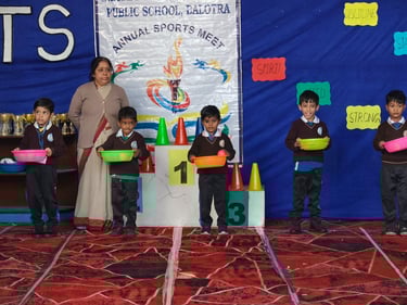 The cricket team at Balotra School stands out for its dedication and teamwork, fostering a spirit of camaraderie among its members. Comprising students from various grades, the team practices regularly to hone their skills and strategies. Under the guidance of experienced coaches, players learn not only the technical aspects of the game but also the importance of sportsmanship and resilience. The team participates in local tournaments, showcasing their talent and sportsmanship while representing their school with pride. The sense of unity and motivation within the team inspires young athletes to push their limits, fostering a love for cricket that extends beyond the field. Balotra School’s cricket team is a shining example of how sports can bring together students, promoting discipline and a healthy competitive spirit.
